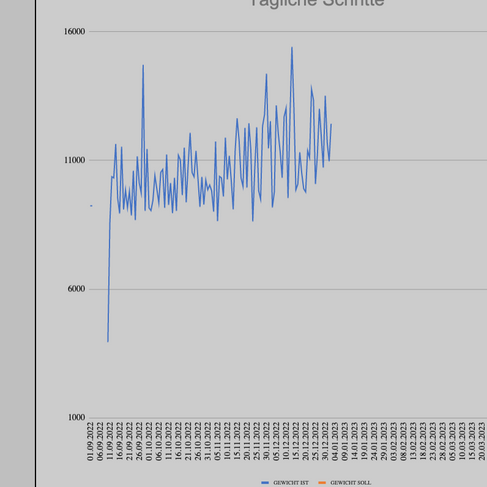 Als Beamter mit teilweise Außendienst war Tobis Aktivitätslevel am Anfang relativ niedrig und lag teilweise bei unter 2000 Schritten täglich. Bei jemandem mit über 200 kg ist es auch eine schlechte Idee sofort die "magischen 10000" Schritte zu gehen.